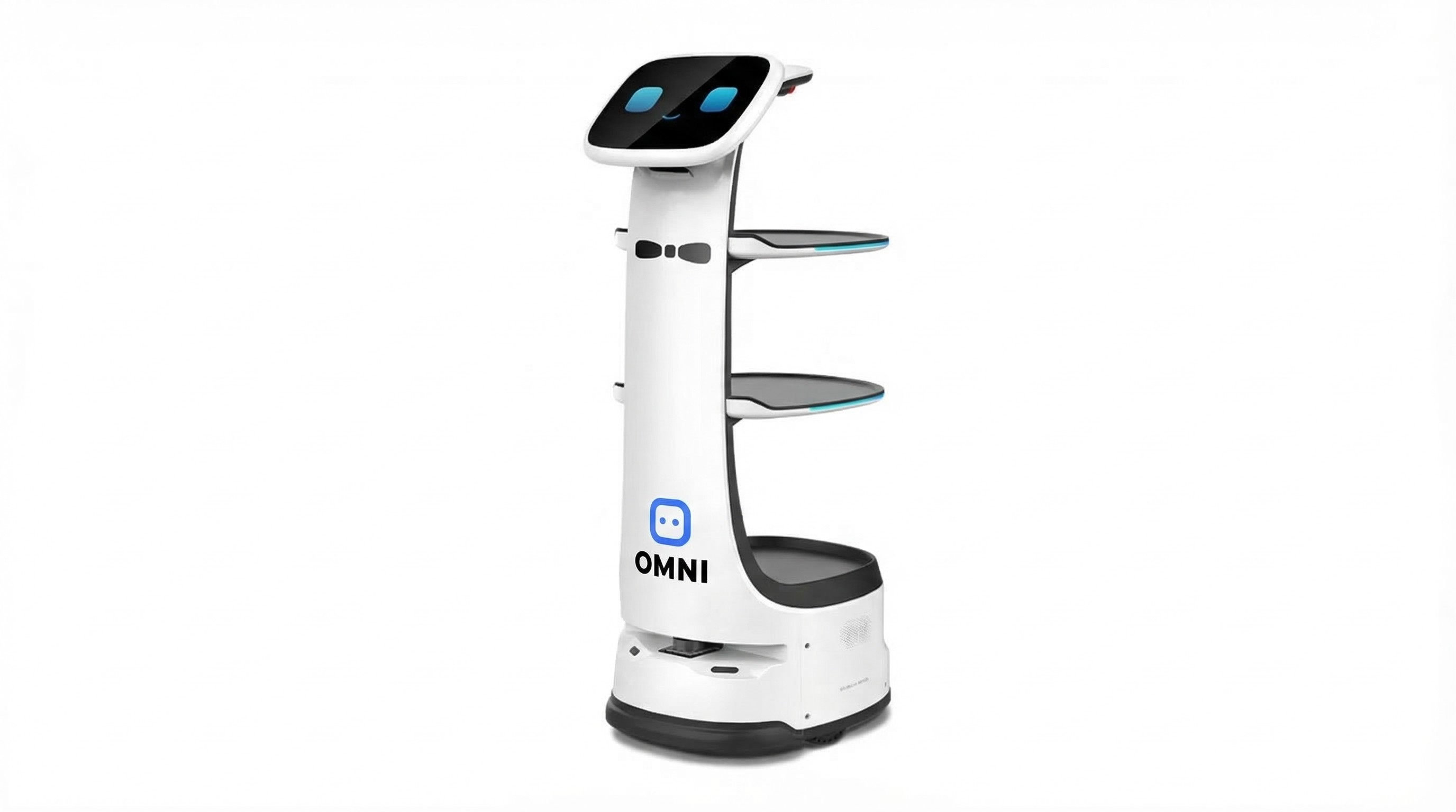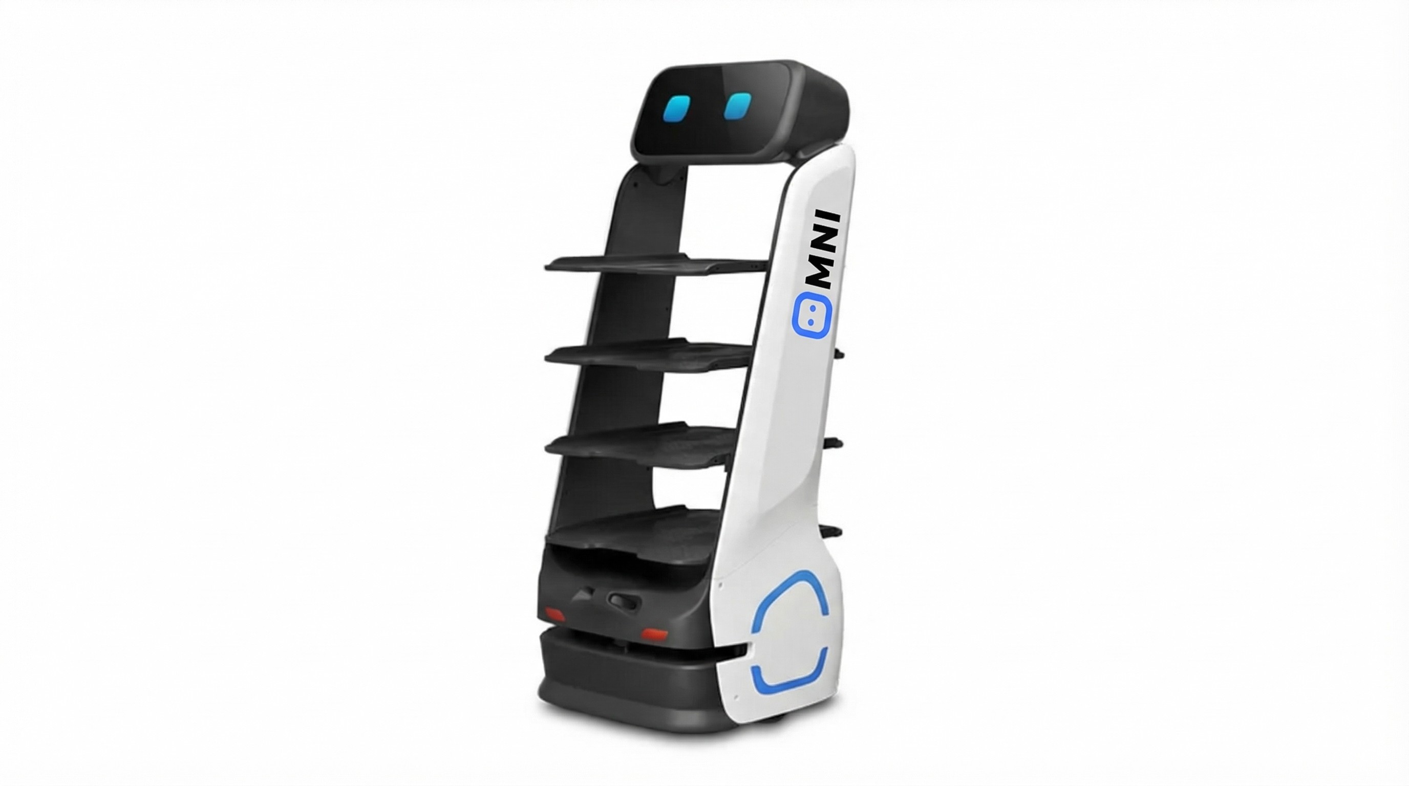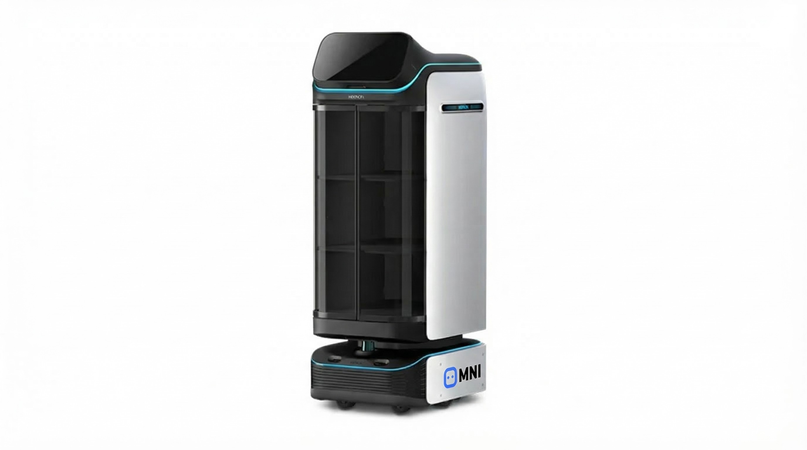 A space-efficient service robot built for narrow aisles and dense venues, capable of navigating pathways as tight as 55 cm while maintaining smooth autonomous delivery.